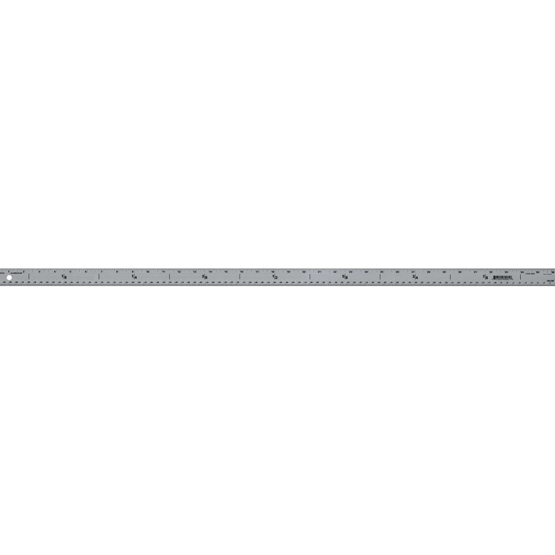 Lightweight, yet sturdy, aluminum yardstick. Includes English and metric, as well as marks for partial yard measurements that break the 36″ ruler into even eighths, making for quick yard calculations. Calibrated on both edges to measure accurately and efficiently. Measurements are photo-anodized, so they are a permanent part of the aluminum. 1/16″ thick, 1-1/8″ wide.