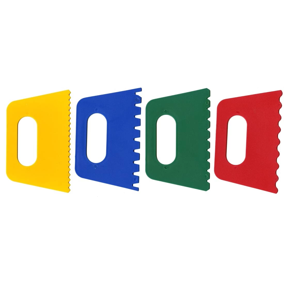 Exciting paint scrapers make four different textures in fingerpaint, washable paint or tempera! Drag and swirl paint for even more fun! Easy-to-hold handles. Each scraper measures approximately 3×5″. Four per package. Ages 3 and up.