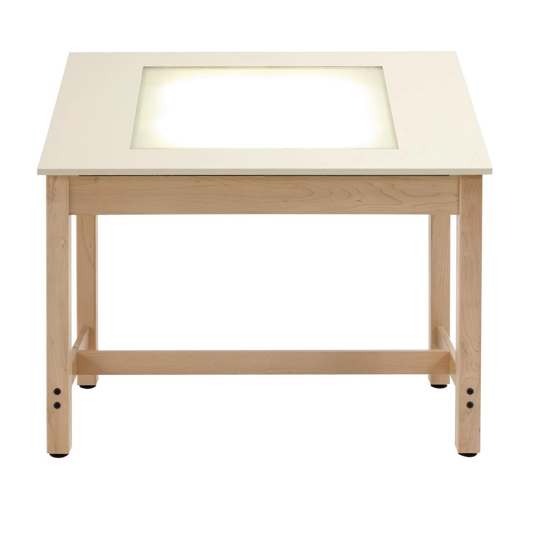 Easily trace drawings! Shatter-resistant glass inset offers maximum diffusion of light with minimum glare and no hot areas. High pressure laminate top adjusts from 0° to 30° and includes a pencil stop and soft-close feature. Maple hardwood frame features a pre-installed 120 volt electrical cord. Includes four energy-efficient fluorescent light tubes. Table measures 39-3/4″ tall, 44″ wide and 24″ deep. Glass area measures 26-1/2″ wide by 17″ deep. Some assembly required. Lifetime limited manufacturer’s warranty.