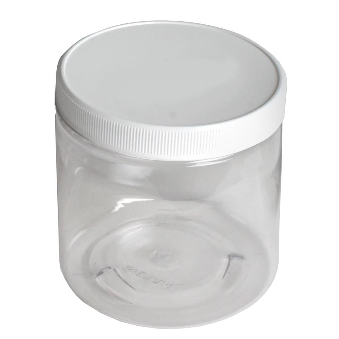 Made of lightweight, durable clear plastic, this 16 oz. jar is ideal for water or paint storage and distribution. Impact-resistant for extra durability. Also great for sorting and organizing craft supplies such as beads, jewelry findings, wiggle eyes, sequins, shells, pins and more. Easily cleaned with soap and water. Features a white plastic screw-top lid.