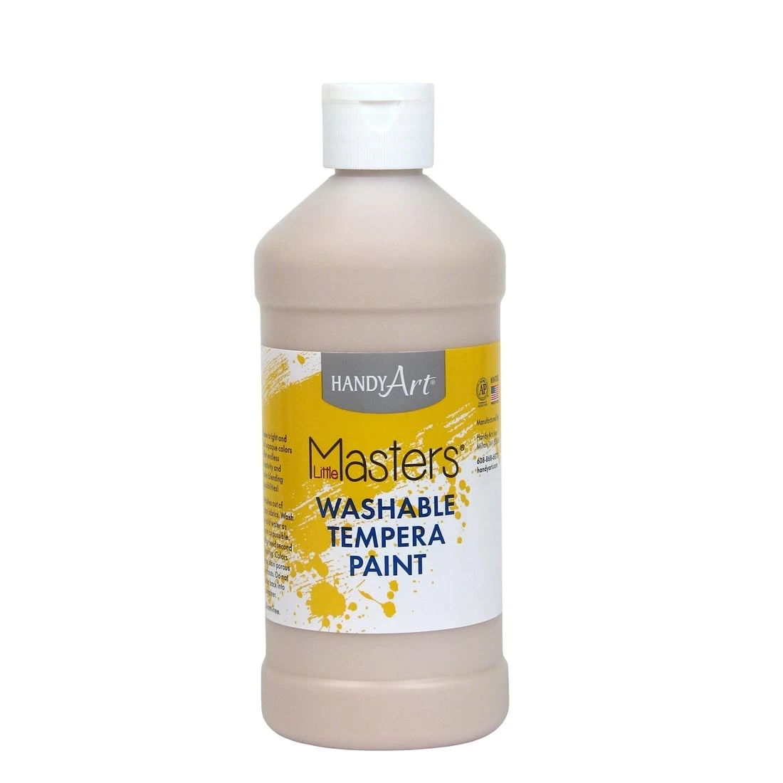 Washable tempera that is highly economical! Ideal for young artists. Wet paint washes from skin and most clothing with soap and water. Bright, velvety smooth paint dries to a matte finish. Pint bottle. Peach. AP Seal, non-toxic.