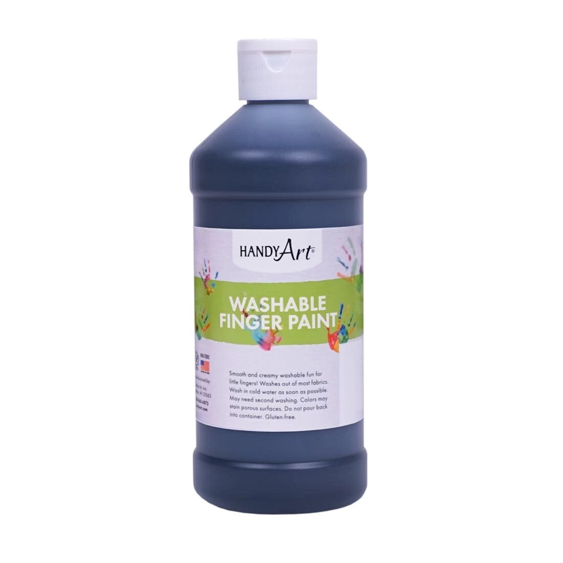 Washable finger paint that is economical for daycare centers and elementary school classrooms. Thick, creamy consistency spreads easily and holds textures. Paint covers paper with excellent opacity. Pint bottle with flip-top lid for easy dispensing. Black. AP Seal, non-toxic.