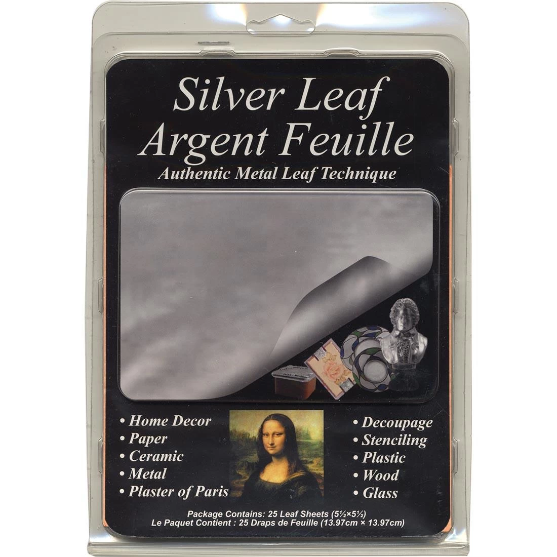 Micro-thin sheets of composition metals separated with tissue paper. Looks like the real thing. Imitation silver leaf is made of aluminum alloy and won’t tarnish. 5-1/2″ squares; 25 per package. Not for outdoor use.