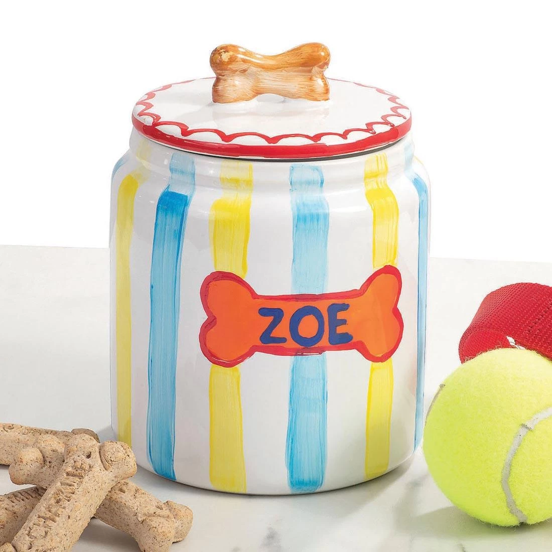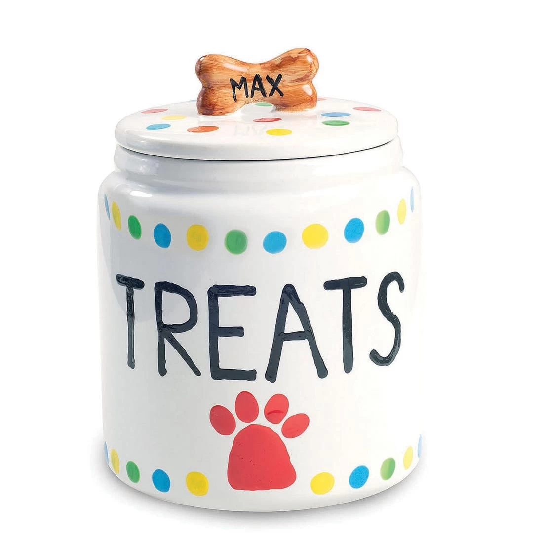 Delight your favorite four-legged friends while nurturing your creativity! Budding artists can create their own designs on this treat jar, bake it for a long-lasting, high-quality look and then use the creation to hold dog biscuits and other canine treats. With a silicone seal on the lid to help keep goodies fresh, this DIY jar is both beautiful and functional. Kit includes porcelain dog treat jar, 2 paintbrushes, 12 paints and painting guide. Jar measures 5 x 6-1/2″ and holds approximately 40 oz. of treats. For ages 8 and up.