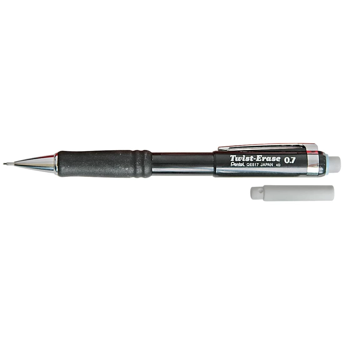 Automatic mechanical pencil with 0.7mm thick leads – great for drafting. Pencil features a soft, rubber grip for comfortable writing. Push down to advance the lead. Large, latex-free eraser is 1/4″ diameter by 1-1/8″ long; advances and retracts by twisting the barrel. Refill erasers sold separately.