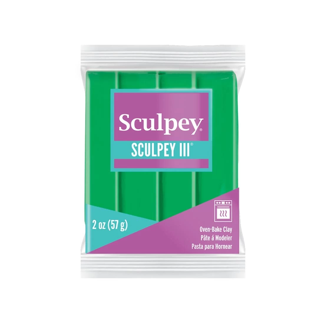 Sculpey III polymer clay features the same excellent handling qualities as original Sculpey, combined with the brilliance of color. Colors are intermixable to create unlimited shades. Easy to work with after just a couple of minutes of kneading. Bake at 275 degrees F for 15 minutes per 1/4″ thickness. Smooth finish after baking. 2 oz. per package. Emerald. Contains no sulfur, gluten, latex or dairy. AP Seal, non-toxic.