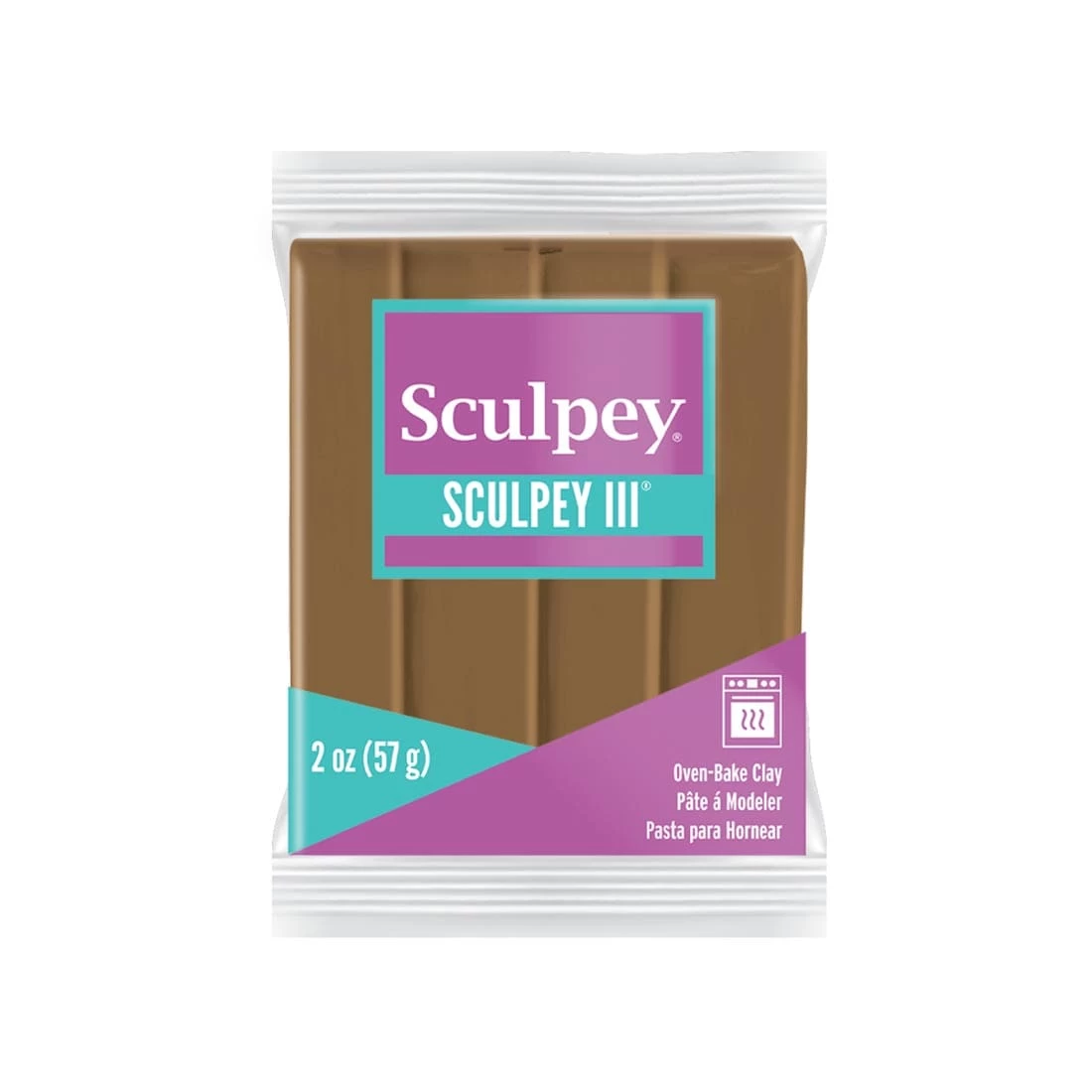 Sculpey III polymer clay features the same excellent handling qualities as original Sculpey, combined with the brilliance of color. Colors are intermixable to create unlimited shades. Easy to work with after just a couple of minutes of kneading. Bake at 275 degrees F for 15 minutes per 1/4″ thickness. Smooth finish after baking. 2 oz. per package. Hazelnut. Contains no sulfur, gluten, latex or dairy. AP Seal, non-toxic.