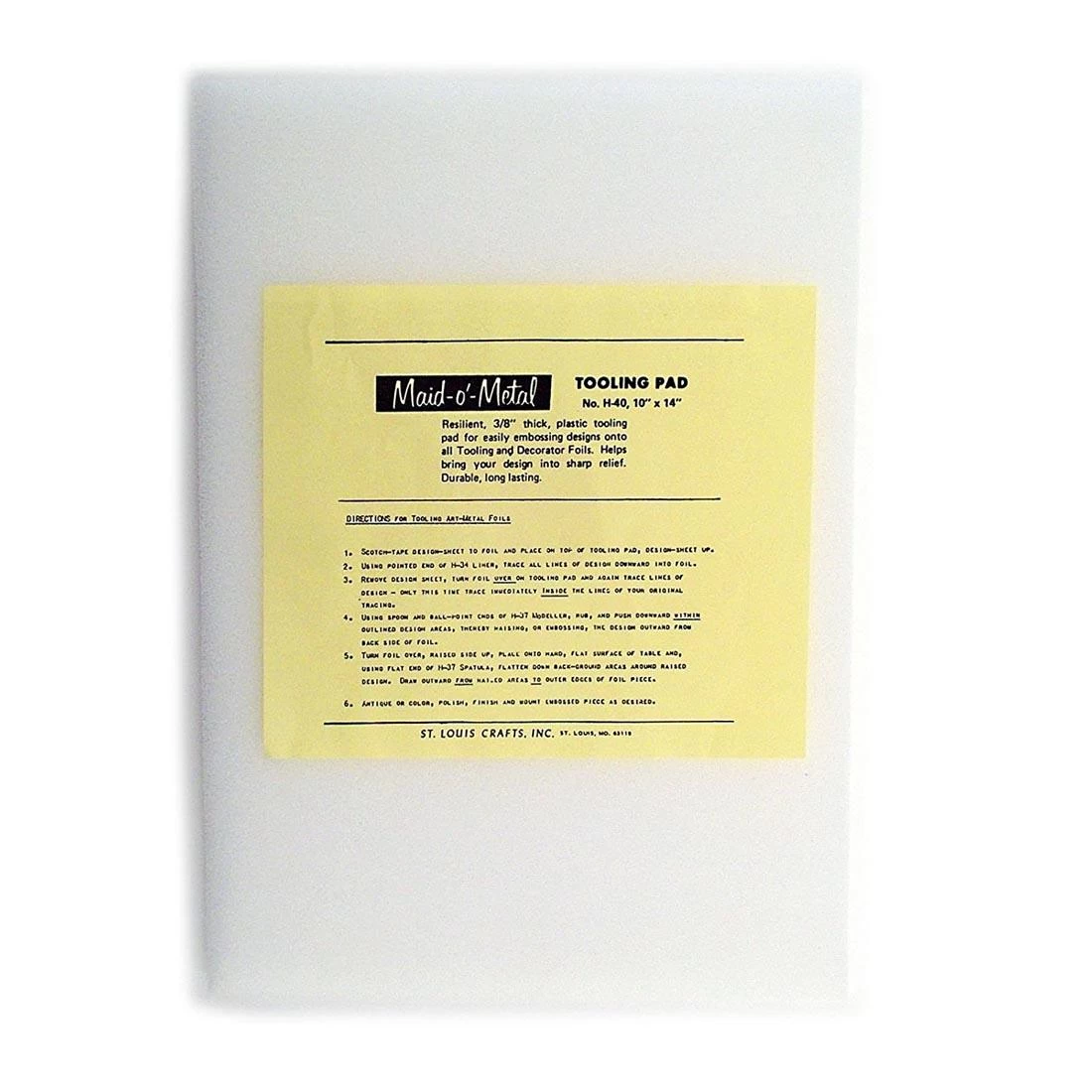 Resilient, 3/8″ thick, plastic pad to use with all of your tooling projects. A necessity for creating sharp reliefs and protecting your work surface. Measures 10×14″.