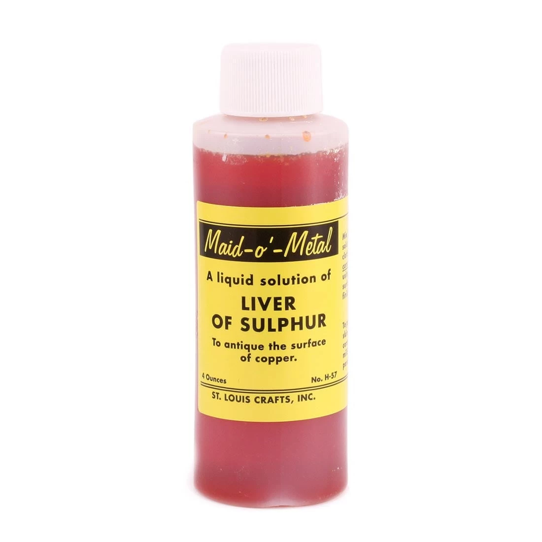 Turn your copper artwork into instant antiques quickly and easily. Simply apply Liver of Sulphur liquid to any copper surface with a cloth to create interesting, tarnished effects. A little goes a long way-this 4 oz. jar contains enough formula to blacken 90 square feet of copper. CL – Cautionary Label: Not recommended for use with children.