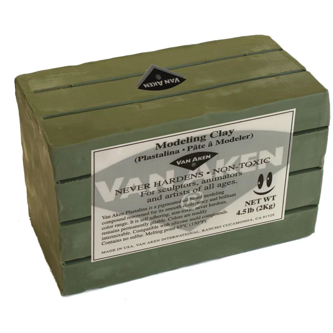 Professional quality modeling clay at an economical price. Smooth, finely textured clay provides crisp detail. Won’t harden. Can be melted to pour into a mold. A traditional gray-green color for reading shape and form. 4.5 lbs. Sulfur- and gluten-free. AP Seal, non-toxic.