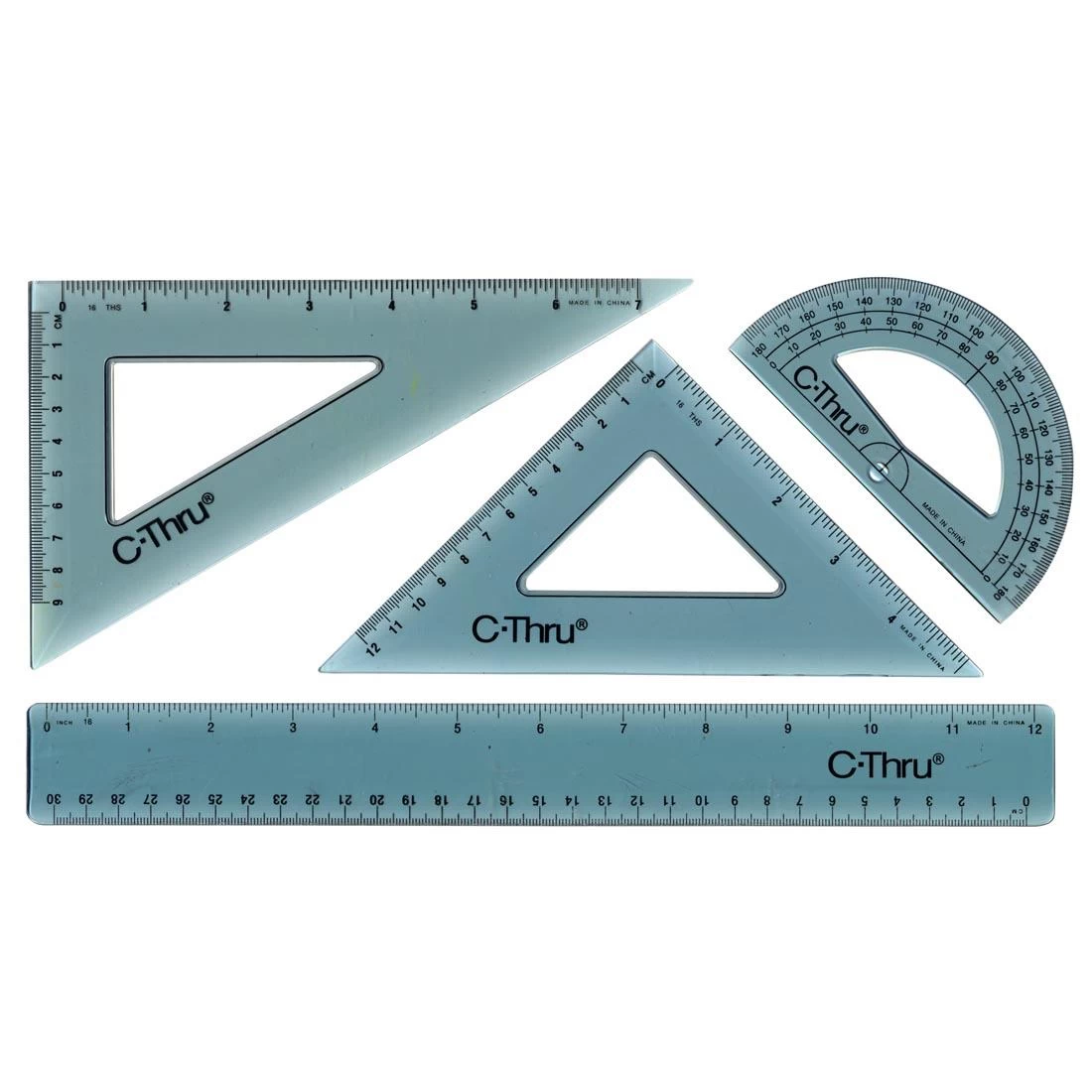 Durable, transparent plastic allows you to see exactly where you are measuring and marking. Includes 12″ ruler, 4-3/4″ 180° protractor, 5″ 45/90° triangle and 7″ 30/60° triangle. Ruler includes both English and metric units; triangles feature inch markings on one edge and metric markings on the other.
