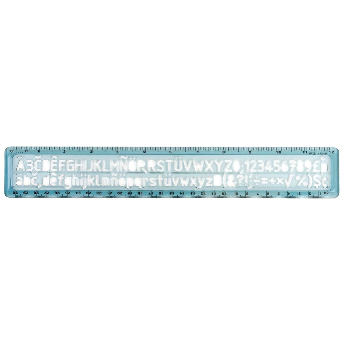 This combo lettering guide ruler is ideal for making posters or signs and lets you make uniform, perfectly formed letters every time. 3/8″ lettering guide with alphabet in capital as well as lower case letters plus numbers, punctuation and common symbols. Raised to prevent smudging. Features inch and centimeter calibrations on edges. Opaque tint allows you to see images beneath the ruler. Measures 12-1/2 x 2″.